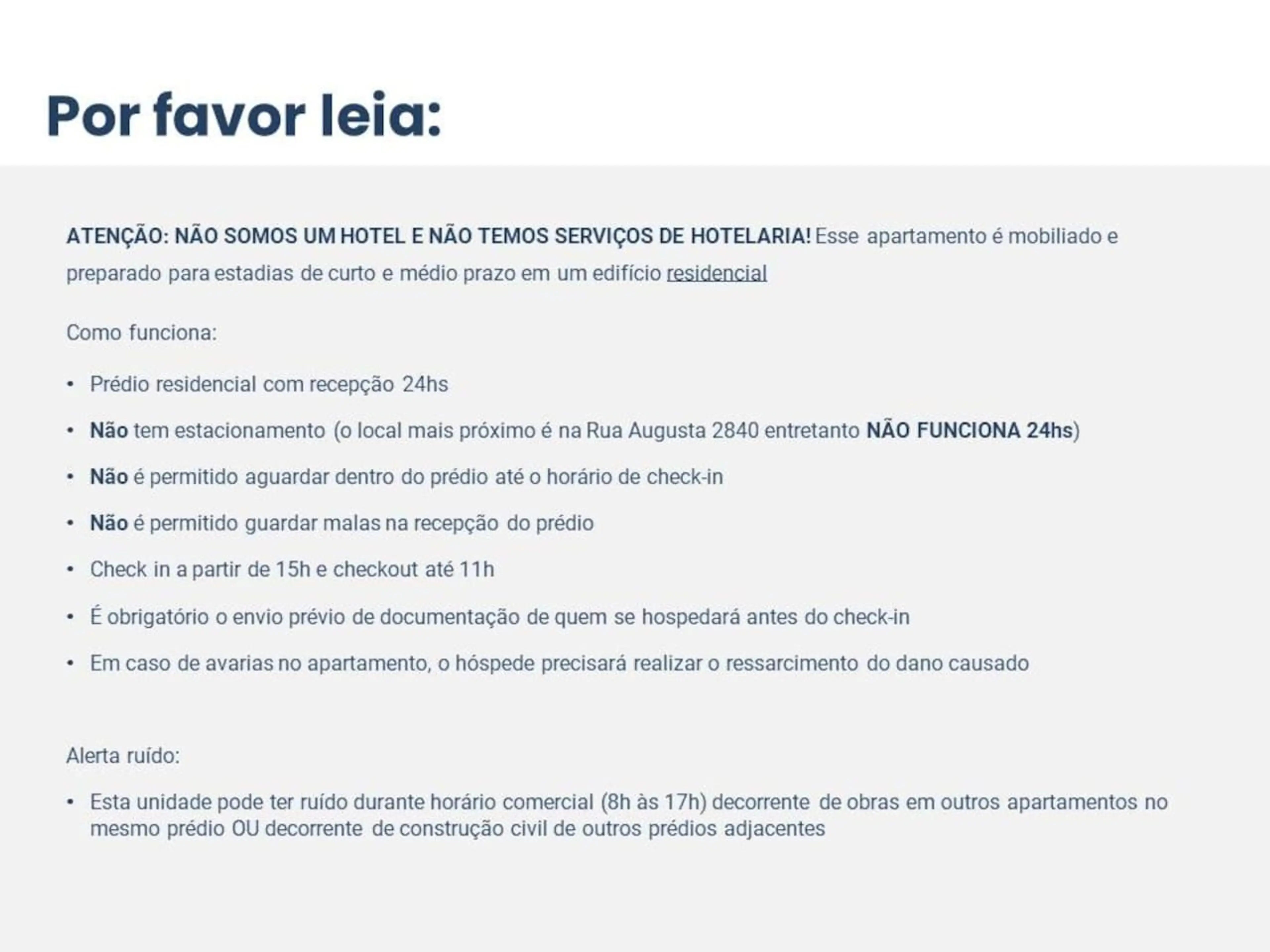 Studio na melhor localização do Jardins no condomínio ON Augusta! Apenas 1 quadra de distância a pé da Rua Oscar Freire Prédio com: * Academia completa * Mini mercado no térreo * Espaço coworking Destaques unidade: * Lençóis cama e toalhas * Wifi 100 mbps